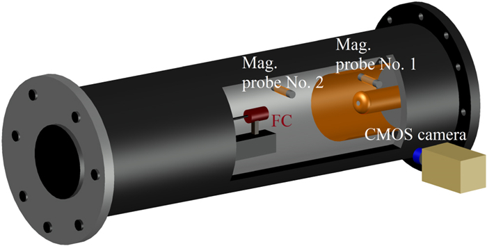 Due to the growing interest in studying the compression and disruption of the plasma filament in magnetic fusion devices and Z-pinches, this work may be important for new developments in the field of controlled thermonuclear fusion. Recently, on a coaxial plasma accelerator, we managed to obtain the relatively long-lived (~300 μs) plasma filaments with its self-magnetic field. This was achieved after modification of the experimental setup by using high-capacitive and low-inductive energy storage capacitor banks, as well as electrical cables with low reactive impedance. Furthermore, we were able to avoid the reverse reflection of the plasma flux from the end of the plasma accelerator by installing a special plasma-absorbing target. Thus, these constructive changes of the experimental setup allowed us to investigate the physical properties of the plasma filament by using the comprehensive diagnostics including Rogowski coil, magnetic probes, and Faraday cup. As a result, such important plasma parameters as density of ions and temperature of electrons in plasma flux, time dependent plasma filament's azimuthal magnetic field were measured in discharge gap and at a distance of 23.5 cm from the tip of the cathode. In addition, the current oscillograms and I–V characteristics of the plasma accelerator were obtained. In the experiments, we also observed the charge separation during the acceleration of plasma flow via oscillograms of electron and ion beam currents.