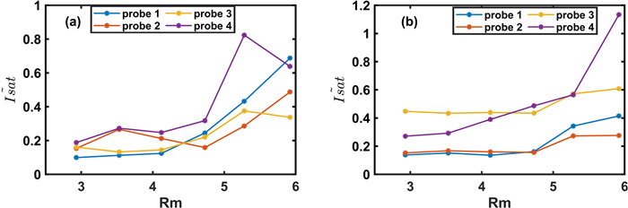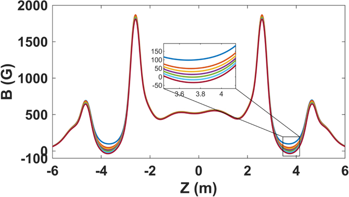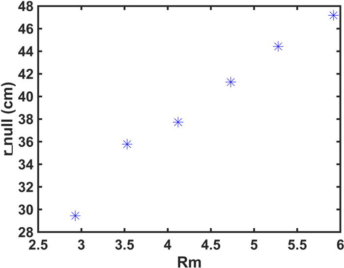 Stabilization of the axisymmetric magnetic mirror relies on the pressure-weighted magnetic field curvature. We report a new experiment by configuring a magnetic cusp structure to stabilize m = 1 interchange mode in the KMAX tandem mirror. The cusp configuration is formed by reversing currents in the two side cell coils, and a stronger cusp can lead to a more stable plasma once the null point of the cusp is less than 35–40 cm away from the device axis. The density fluctuations measured by four axial Langmuir probes are mitigated by 70%–80%. The stabilization effect is consistent with the prediction of a theoretical calculation.