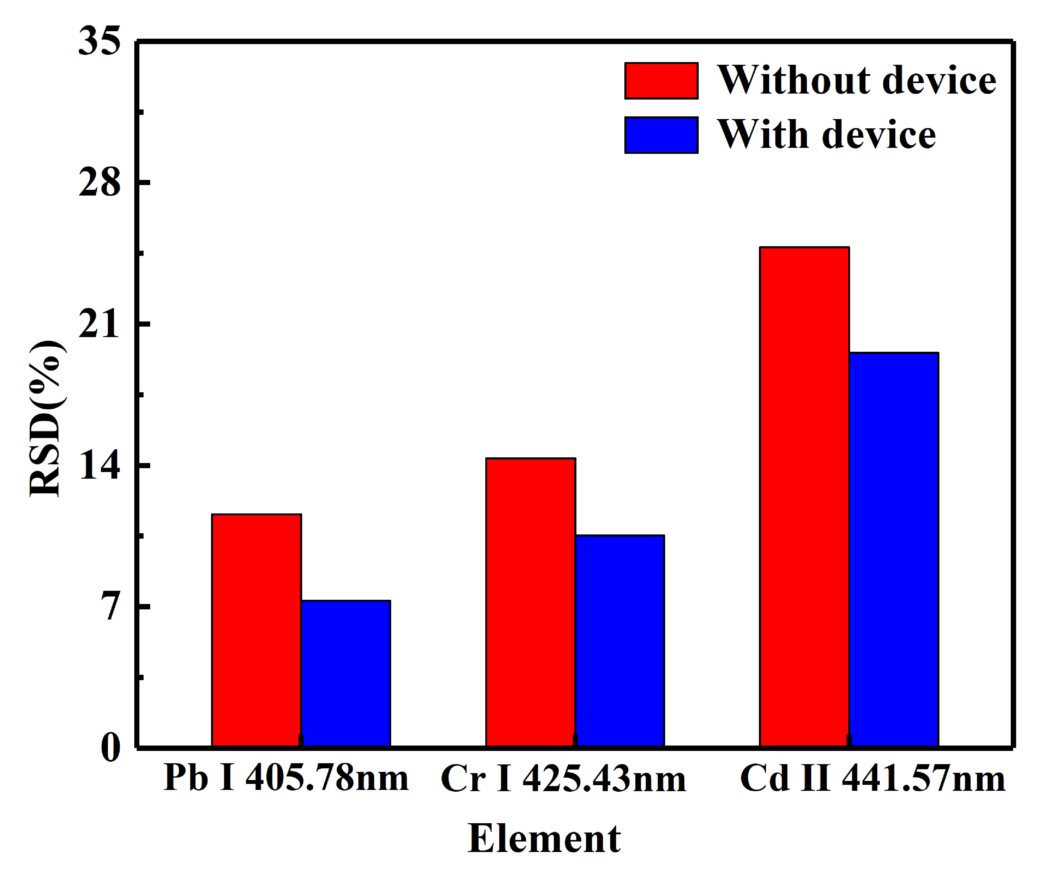 Only a small amount of spectral information is collected because the collection solid angle of the optical fiber probe and lens is very limited when collecting spectral information. To overcome this limitation, this study presents a novel method for acquiring plasma spectral information from various spatial directions. A parabolic-shaped plasma spectral collection device (PSCD) is employed to effectively collect more spectral information into the spectrometer, thereby enhancing the overall spectral intensity. The research objects in this study were soil samples containing different concentrations of heavy metals Pb, Cr, and Cd. The results indicate that the PSCD significantly enhances the spectral signal, with an enhancement rate of up to 45%. Moreover, the signal-to-noise ratio also increases by as much as 36%. Simultaneously, when compared to the absence of a device, it is found that there is no significant variation in plasma temperature when the PSCD is utilized. This observation eliminates the impact of the spatial effect caused by the PSCD on the spectral intensity. Consequently, a concentration-spectral intensity relationship curve is established under the PSCD. The results revealed that the linear fitting R2 for Pb, Cr, and Cd increased by 0.011, 0.001, and 0.054, respectively. Additionally, the limit of detection (LOD) decreased by 0.361 ppm, 0.901 ppm, and 0.602 ppm, respectively. These findings indicate that the spectral enhancement rate elevates with the increase in heavy metal concentration. Hence, the PSCD can effectively enhance the spectral intensity and reduce the detection limit of heavy metals in soil.